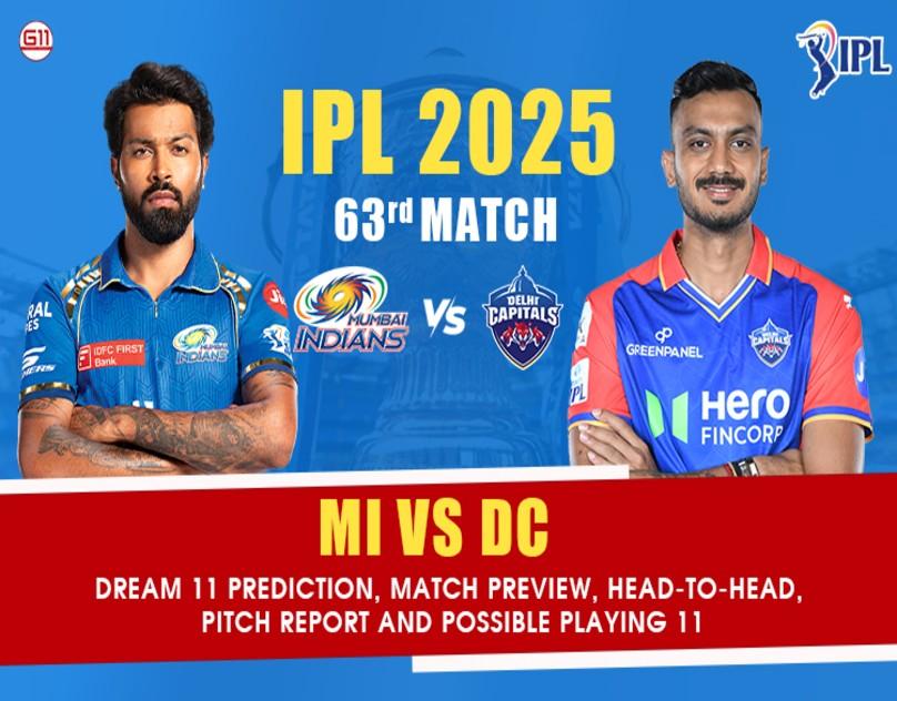 The 63rd match of IPL 2025 between Mumbai Indians and Delhi Capitals at Wankhede Stadium in Mumbai. This is set to be an exciting contest.
